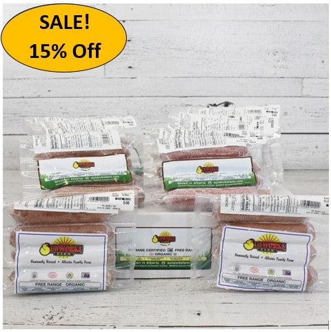 {"id":4493931806771,"title":"Pork Sausages - 5 pkg of the same flavour","handle":"pork-sausages-5-packages","description":"\u003cp\u003e\u003cstrong\u003eChoose one of the following flavours: Pork Maple Breakfast; Pork Sunworks Sausage; Pork Bratwurst Sausage, \u003c\/strong\u003e\u003c\/p\u003e\n\u003cp\u003e\u003cstrong\u003eGluten-free, dairy-free, nut free, nitrate\/nitrite-free, sulphate\/sulphite free. Made with only our own organic pork, organic spices, salt and when needed for a little sweetness organic maple syrup or organic honey.\u003c\/strong\u003e\u003c\/p\u003e\n\u003cp\u003e\u003cstrong\u003eFrozen. Maple Breakfast\u003cspan\u003e sausages\u003c\/span\u003e\u003cspan\u003e have 6 breakfast sized links per package. All other flavours have 4 dinner sized links per package. \u003c\/span\u003e\u003c\/strong\u003e\u003c\/p\u003e\n\u003cp\u003e\u003cstrong\u003eIndividual packages of this product are also available for purchase at our own locations in Edmonton and Calgary. \u003c\/strong\u003e\u003c\/p\u003e\n\u003cp style=\"text-align: center;\" class=\"MsoNormal\"\u003e\u003cspan style=\"color: rgb(75, 140, 10);\"\u003e\u003cb\u003eMaple Breakfast Sausage – Certified Organic\u003c\/b\u003e\u003c\/span\u003e\u003c\/p\u003e\n\u003cp style=\"text-align: center;\" class=\"MsoNormal\"\u003e\u003cspan style=\"color: rgb(75, 140, 10);\"\u003eA cozy, familiar favorite crafted with organic pork, cracked black pepper, garlic, and a hint of real maple syrup. This sausage offers a classic, well-rounded flavor that’s warm and satisfying\u003c\/span\u003e\u003c\/p\u003e\n\u003cp style=\"text-align: center;\" class=\"MsoNormal\"\u003e\u003cspan style=\"color: rgb(75, 140, 10);\"\u003e\u003cb\u003eSunworks Pork Sausage – Certified Organic\u003c\/b\u003e\u003c\/span\u003e\u003c\/p\u003e\n\u003cp style=\"text-align: center;\" class=\"MsoNormal\"\u003e\u003cspan style=\"color: rgb(75, 140, 10);\"\u003eBold and savory with a touch of heat, this sausage features a flavourful mix of fennel, chili flakes, black pepper, and parsley. A splash of lemon powder brightens the profile.\u003c\/span\u003e\u003c\/p\u003e\n\u003cp style=\"text-align: center;\" class=\"MsoNormal\"\u003e\u003cspan style=\"color: rgb(75, 140, 10);\"\u003e\u003cb\u003eBratwurst Sausage – Certified Organic\u003c\/b\u003e\u003c\/span\u003e\u003c\/p\u003e\n\u003cp style=\"text-align: center;\" class=\"MsoNormal\"\u003e\u003cspan style=\"color: rgb(75, 140, 10);\"\u003eA traditional-style bratwurst with a delicately spiced blend of white pepper, cardamom, ginger, nutmeg, and mace. With a smooth, aromatic flavour, this sausage is rich, refined, and deeply satisfying.\u003c\/span\u003e\u003c\/p\u003e\n\u003cp\u003e \u003c\/p\u003e\n\u003cp\u003e\u003cstrong\u003e\u003cimg alt=\"\" src=\"https:\/\/cdn.shopify.com\/s\/files\/1\/0251\/4147\/7427\/files\/Logos_for_Website.jpg?v=1739995372\" width=\"335\" height=\"97\" style=\"display: block; margin-left: auto; margin-right: auto;\"\u003e\u003c\/strong\u003e\u003c\/p\u003e\n\u003cp\u003e\u003cstrong\u003e\u003cspan style=\"color: rgb(0, 0, 0);\"\u003e\u003cem\u003eAny applicable online discounts will be automatically applied at checkout and can be viewed on the cart page\u003c\/em\u003e\u003c\/span\u003e\u003c\/strong\u003e\u003c\/p\u003e","published_at":"2025-02-03T16:35:58-07:00","created_at":"2020-04-08T13:13:31-06:00","vendor":"Sunworks Farm","type":"deli \u0026 sausages","tags":["pork"],"price":5250,"price_min":5250,"price_max":5250,"available":true,"price_varies":false,"compare_at_price":null,"compare_at_price_min":0,"compare_at_price_max":0,"compare_at_price_varies":false,"variants":[{"id":31826056052787,"title":"Pork Maple Breakfast","option1":"Pork Maple Breakfast","option2":null,"option3":null,"sku":"MEATBOX9414","requires_shipping":false,"taxable":false,"featured_image":null,"available":true,"name":"Pork Sausages - 5 pkg of the same flavour - Pork Maple Breakfast","public_title":"Pork Maple Breakfast","options":["Pork Maple Breakfast"],"price":5250,"weight":0,"compare_at_price":null,"inventory_management":"shopify","barcode":"","requires_selling_plan":false,"selling_plan_allocations":[],"quantity_rule":{"min":1,"max":null,"increment":1}},{"id":31826056118323,"title":"Pork Sunworks Sausage","option1":"Pork Sunworks Sausage","option2":null,"option3":null,"sku":"MEATBOX9481","requires_shipping":false,"taxable":false,"featured_image":null,"available":true,"name":"Pork Sausages - 5 pkg of the same flavour - Pork Sunworks Sausage","public_title":"Pork Sunworks Sausage","options":["Pork Sunworks Sausage"],"price":5250,"weight":0,"compare_at_price":null,"inventory_management":"shopify","barcode":"","requires_selling_plan":false,"selling_plan_allocations":[],"quantity_rule":{"min":1,"max":null,"increment":1}},{"id":31826056151091,"title":"Pork Bratwurst","option1":"Pork Bratwurst","option2":null,"option3":null,"sku":"MEATBOX9413","requires_shipping":false,"taxable":false,"featured_image":null,"available":true,"name":"Pork Sausages - 5 pkg of the same flavour - Pork Bratwurst","public_title":"Pork Bratwurst","options":["Pork Bratwurst"],"price":5250,"weight":0,"compare_at_price":null,"inventory_management":"shopify","barcode":"","requires_selling_plan":false,"selling_plan_allocations":[],"quantity_rule":{"min":1,"max":null,"increment":1}}],"images":["\/\/sunworksfarm.com\/cdn\/shop\/files\/PorkSausages5pkg15_Off.jpg?v=1760474217","\/\/sunworksfarm.com\/cdn\/shop\/products\/Sauasages_54459aba-e38a-4ae3-9363-6e2ef44d3ce1.png?v=1760474217"],"featured_image":"\/\/sunworksfarm.com\/cdn\/shop\/files\/PorkSausages5pkg15_Off.jpg?v=1760474217","options":["Flavour"],"media":[{"alt":null,"id":33621639987375,"position":1,"preview_image":{"aspect_ratio":0.998,"height":481,"width":480,"src":"\/\/sunworksfarm.com\/cdn\/shop\/files\/PorkSausages5pkg15_Off.jpg?v=1760474217"},"aspect_ratio":0.998,"height":481,"media_type":"image","src":"\/\/sunworksfarm.com\/cdn\/shop\/files\/PorkSausages5pkg15_Off.j